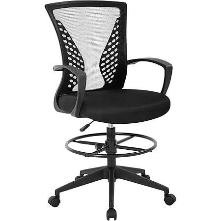 Amazon Com Fdw Drafting Chair Tall Office Chair Ergonomic Office Chairs Adjustable Height Rolling Swivel Computer Task Chair Mesh Desk Chair With Arms Foot Rest Back Support Black Office Products